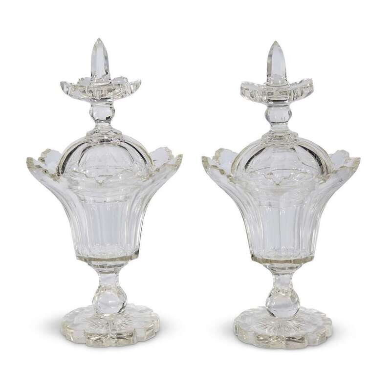 A pair of Regency cut-glass covered bonbon jars first half 19th century
