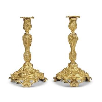 A pair of Louis XV style gilt-bronze candlesticks mid 19th century