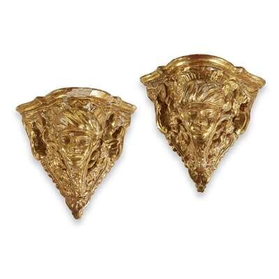 A pair of Continental giltwood blackamoor corner brackets in the Régence taste 19th century