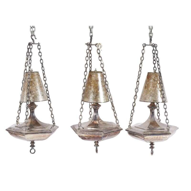 A set of three silvered metal hall lanterns 20th century