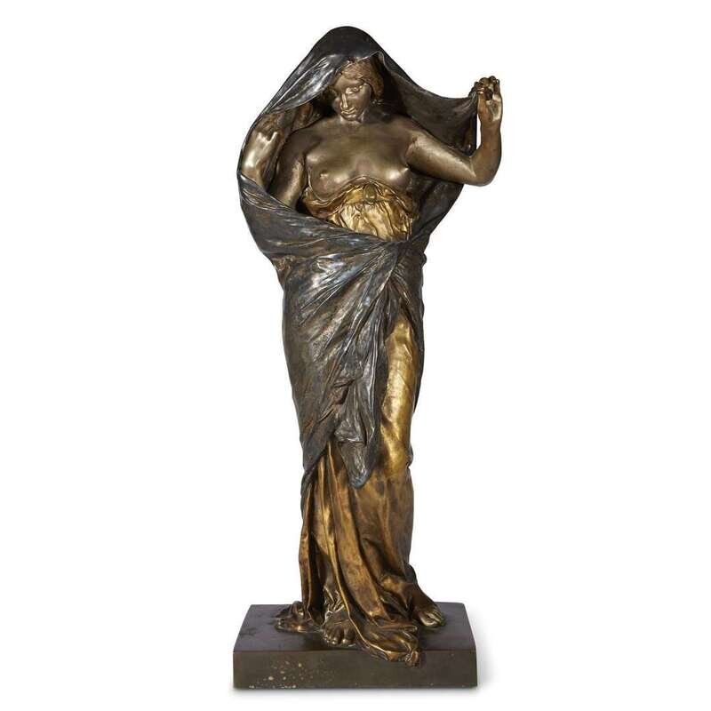 Gilt, silvered, and patinated bronze, signed in cast to base "E. Barrias" and "Susse Fres. Eds." with "Susse Frères éditeurs Paris" foundry pastille.
