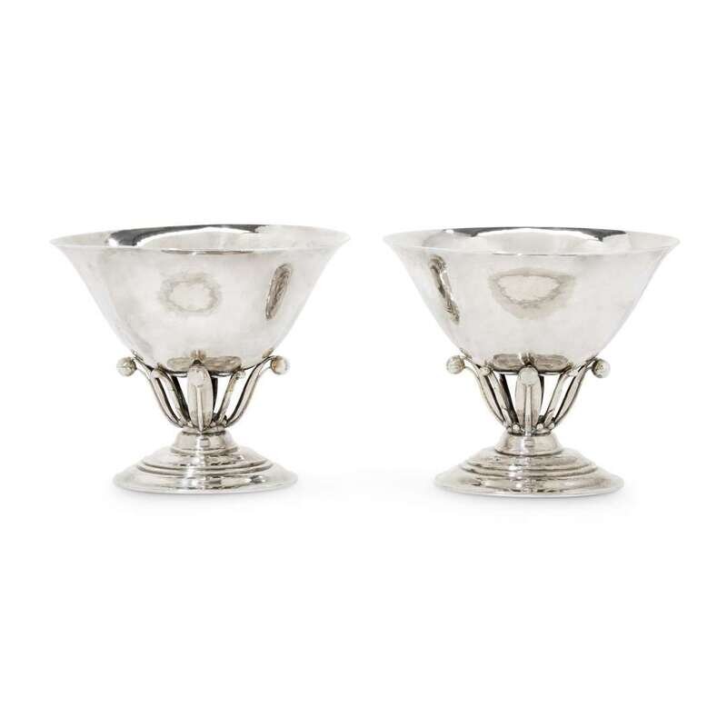 An assembled pair of Danish sterling silver compotes on oval bases Georg Jensen, Copenhagen, 1925-1932 and later