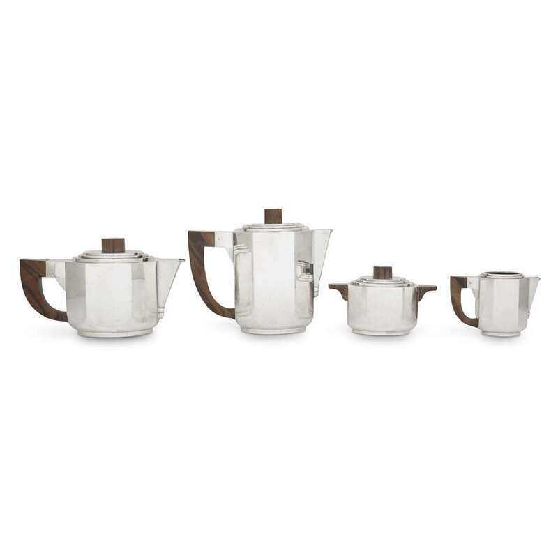 A French sterling silver Art Deco four piece tea and coffee service Henri Lapparra, Paris, circa 1925