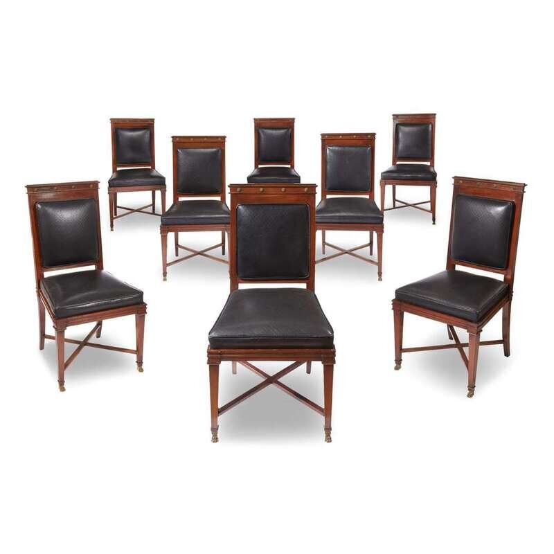 A set of eight Maison Jansen Empire style gilt-bronze mounted mahogany dining chairs 1949