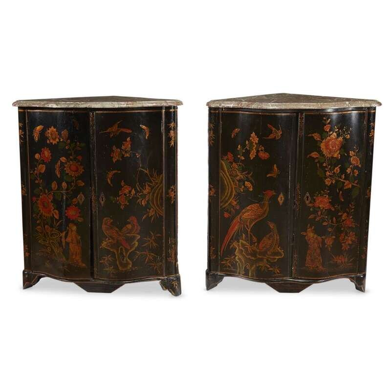 A pair of Louis XV Chinese lacquer encoigneures circa 1750