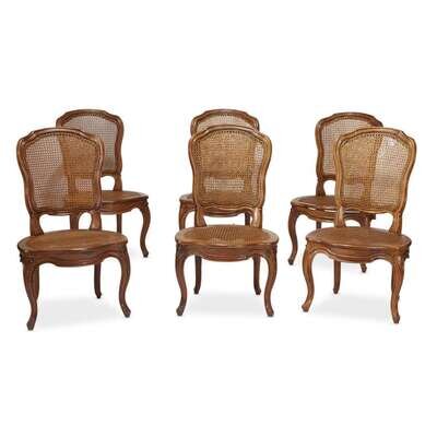 A suite of six Louis XV caned walnut dining chairs Pierre Nogaret (French, 1718-1771), circa 1750