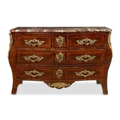A Louis XV ormolu-mounted tulipwood and kingwood parquetry commode probably Gaspard Coulon (French, circa 1690-1775), circa 1740