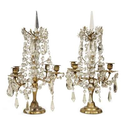 A pair of Louis XV style giltmetal and cut-glass four-light girandoles late 19th/early 20th century