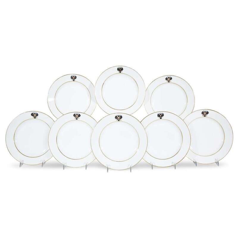 A set of eight Russian Imperial Porcelain dinner plates Imperial Porcelain Factory, St. Petersburg, various dates