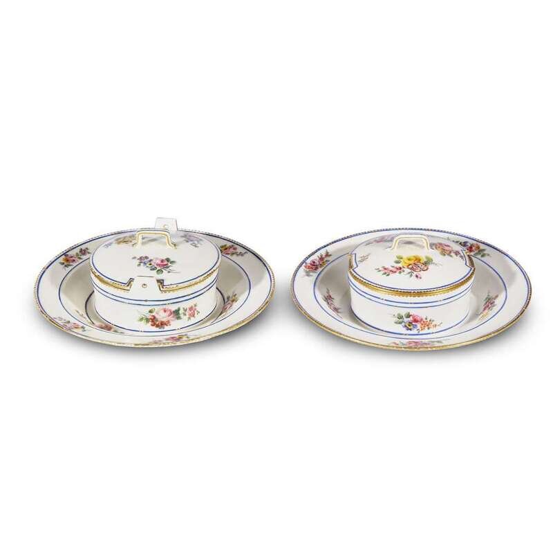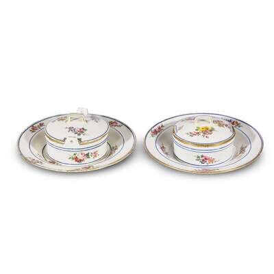 A pair of Sèvres floral decorated covered beurriers third quarter 18th century
