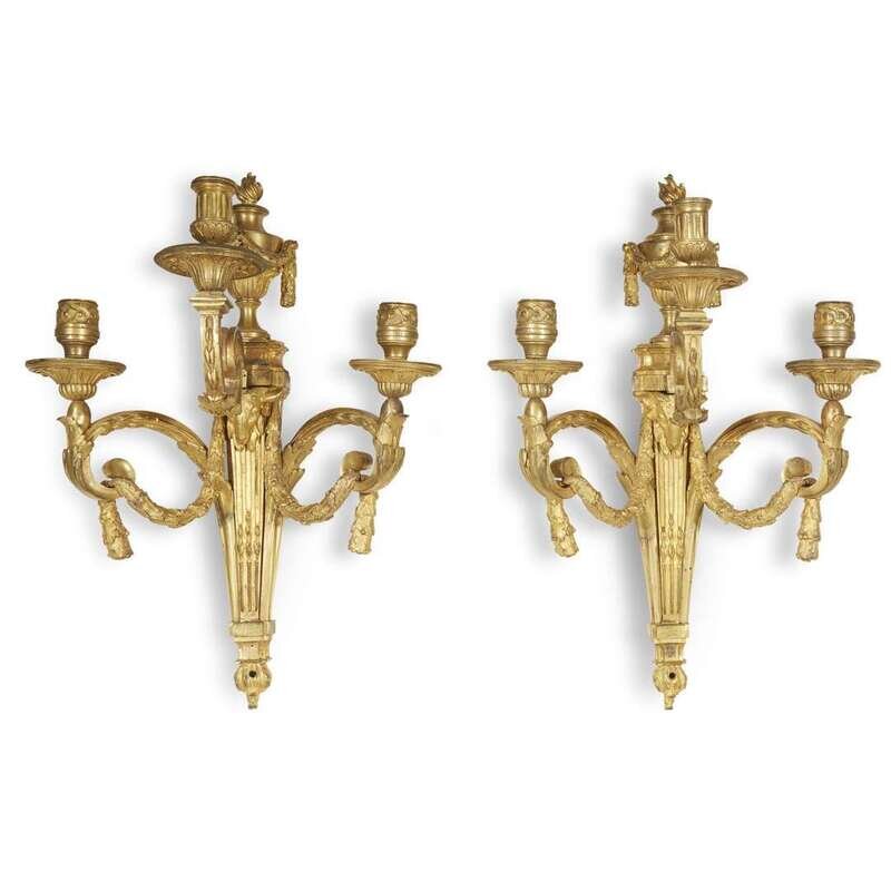A pair of Louis XVI ormolu three-light appliques circa 1775