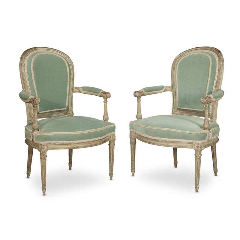 A pair of Louis XVI white-painted fauteuils en cabriolet attributed to Georges Jacob (French, 1739-1814), circa 1780