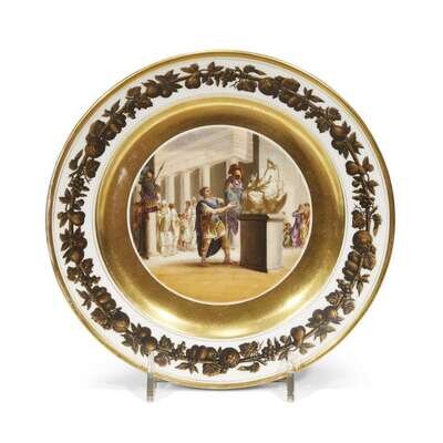 A Paris Porcelain parcel-gilt and hand-painted plate depicting Marcellus 19th century