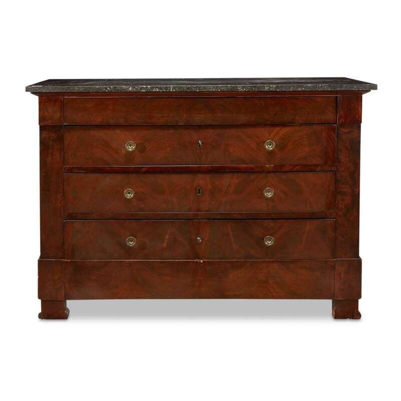 A Restauration figured mahogany four drawer commode circa 1830