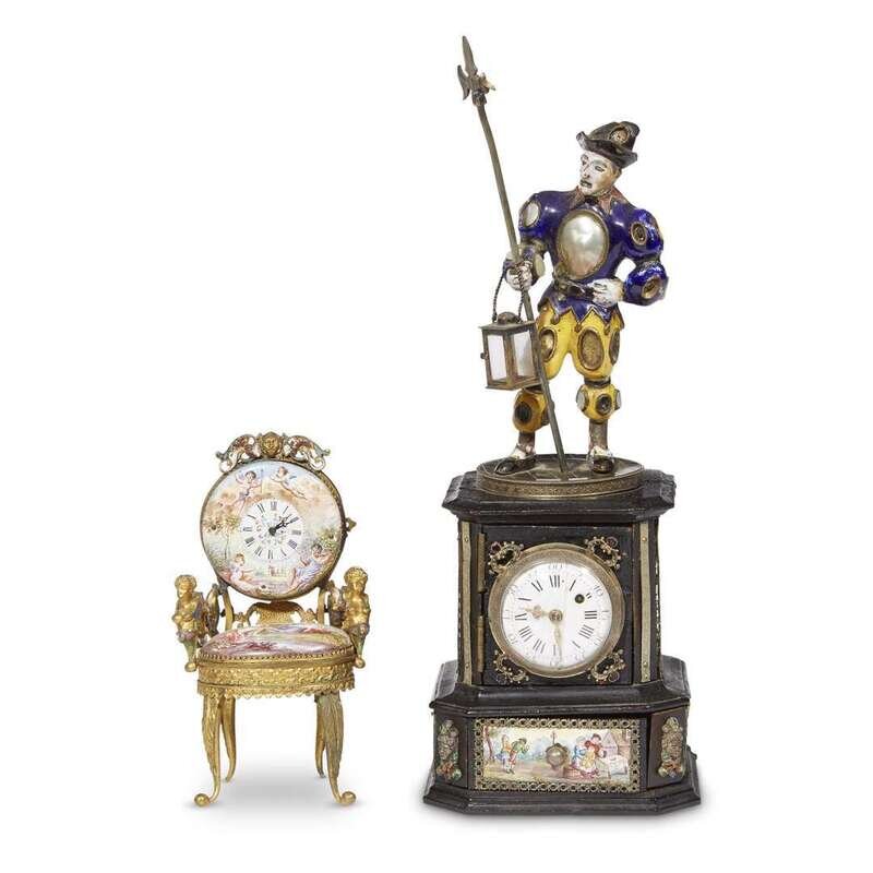 One in the form of a Louis XV style chair, the other in the form of a jester. (2).