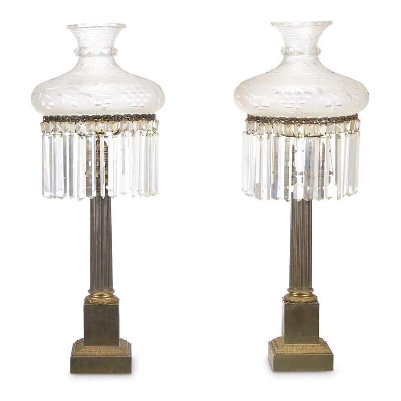 A pair of American patinated and gilt-bronze Sinumbra lamps 19th century