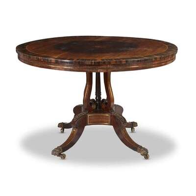 A William IV brass inlaid calamander and rosewood center table circa 1835