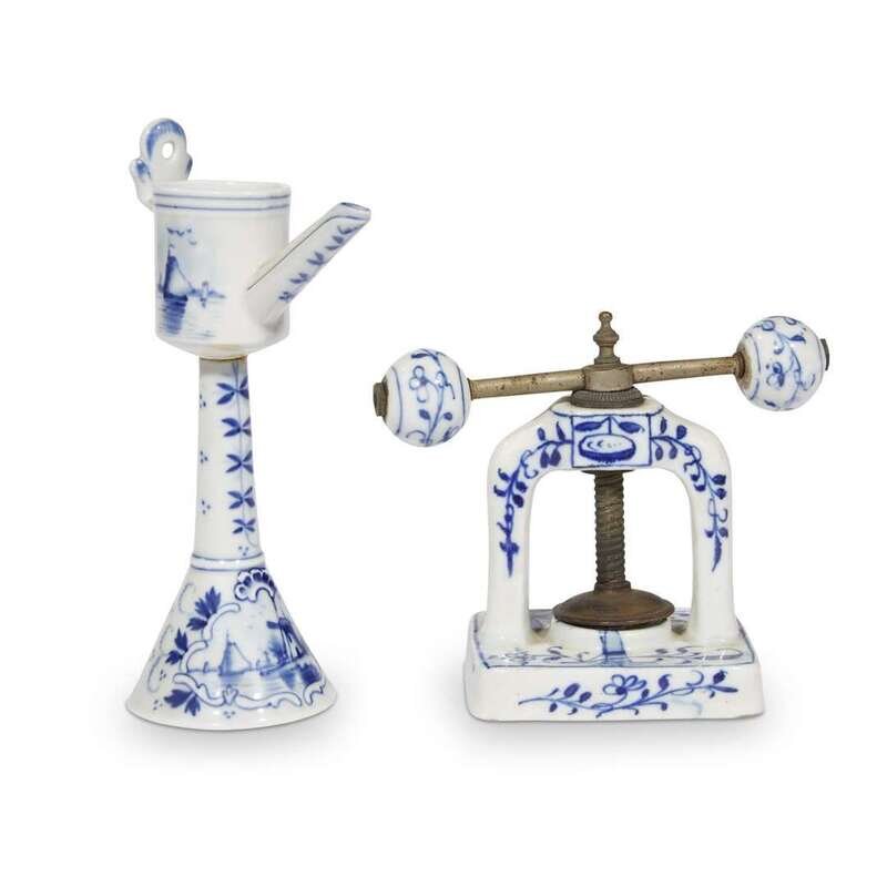Comprising a press, a funnel, and a spout; the press with label to underside inscribed: "The Old Donaldson House, 217 St Paul Street, July 4th, 1909." (3).