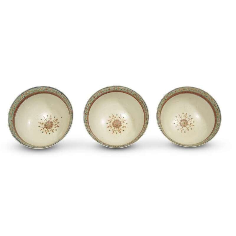 Three Chinese enameled porcelain "Bencharong" bowls for the Thai market 18th or 19th century