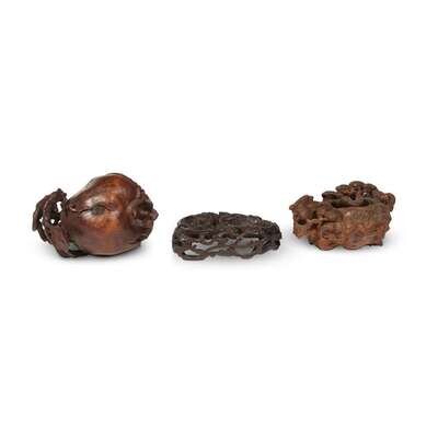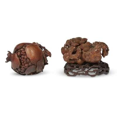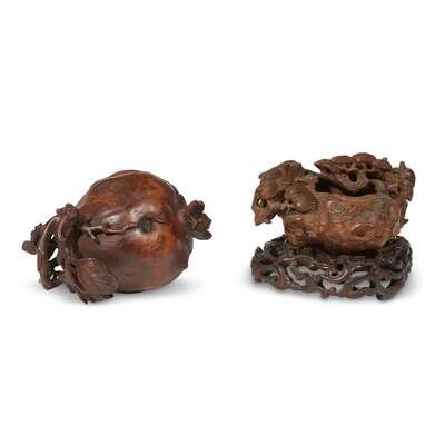A Chinese carved bamboo pomegranate and a pine water coupe Qing Dynasty, probably 18th century