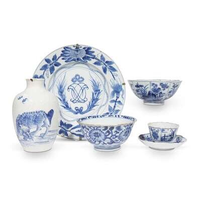 Six Chinese blue and white porcelain and soft-paste porcelain items 17th-18th centuries
