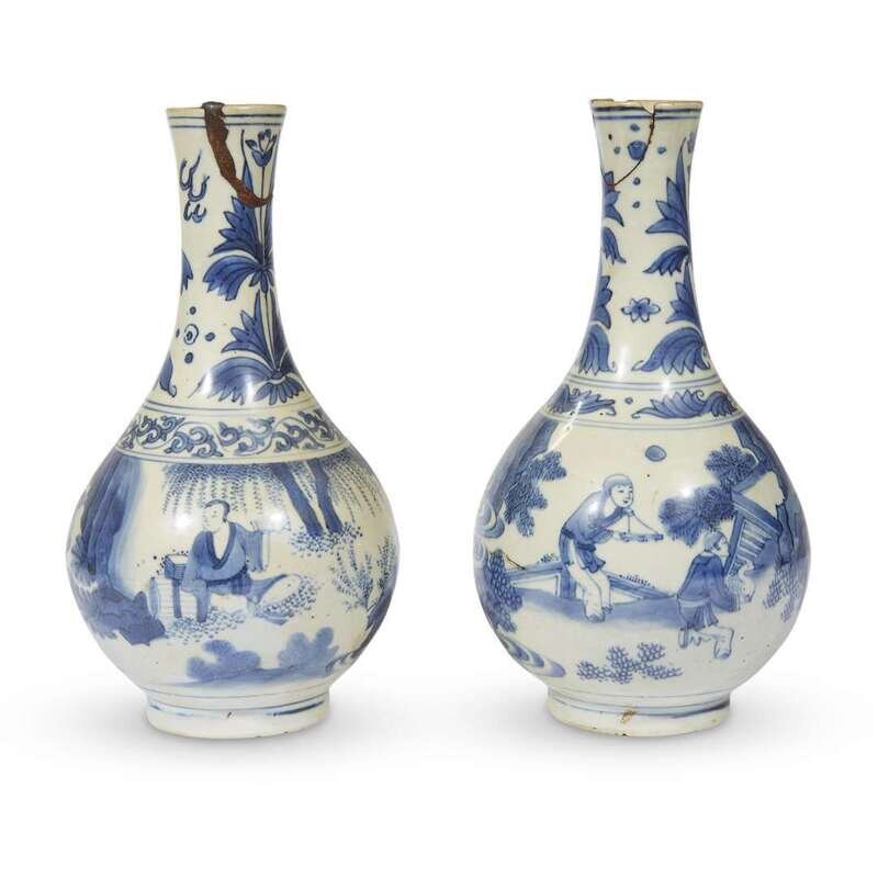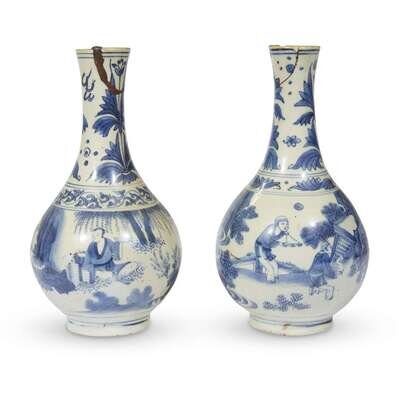 Two Chinese blue and white porcelain bottle vases Transitional Period