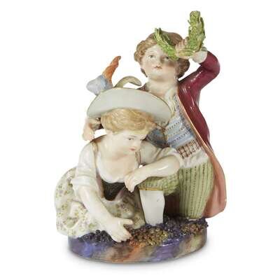 A Meissen porcelain figural group The Vintners, 1815-1860