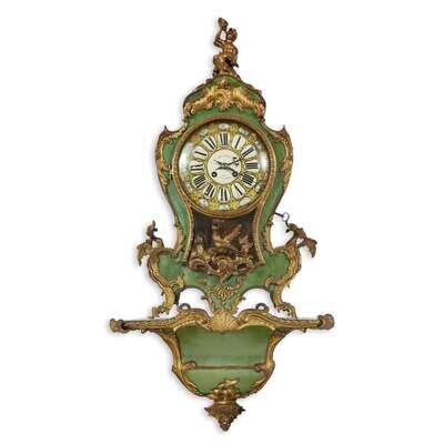 Of typical form, with applied rocaille mounts, the face with segmented roman numerals and signed "Richond à Paris" with hourly strike.