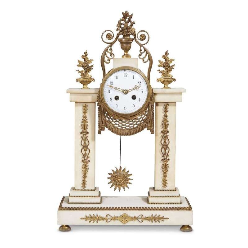 A Louis XVI style giltmetal-mounted white marble portico clock Samuel Marti et Cie., Paris, last quarter 19th century