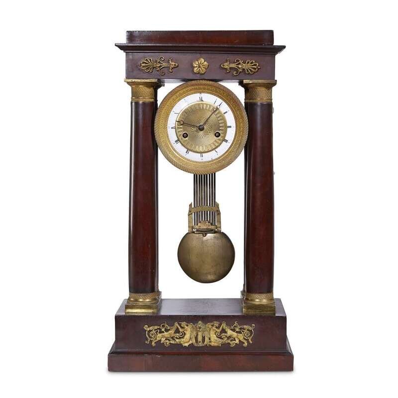 An Empire gilt-bronze mounted mahogany portico clock circa 1815
