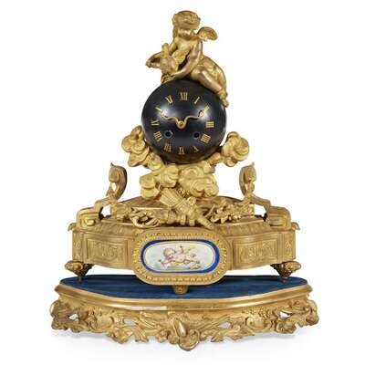 A Napoleon III porcelain-mounted gilt and enameled bronze clock Japy Frères, Paris, after 1855