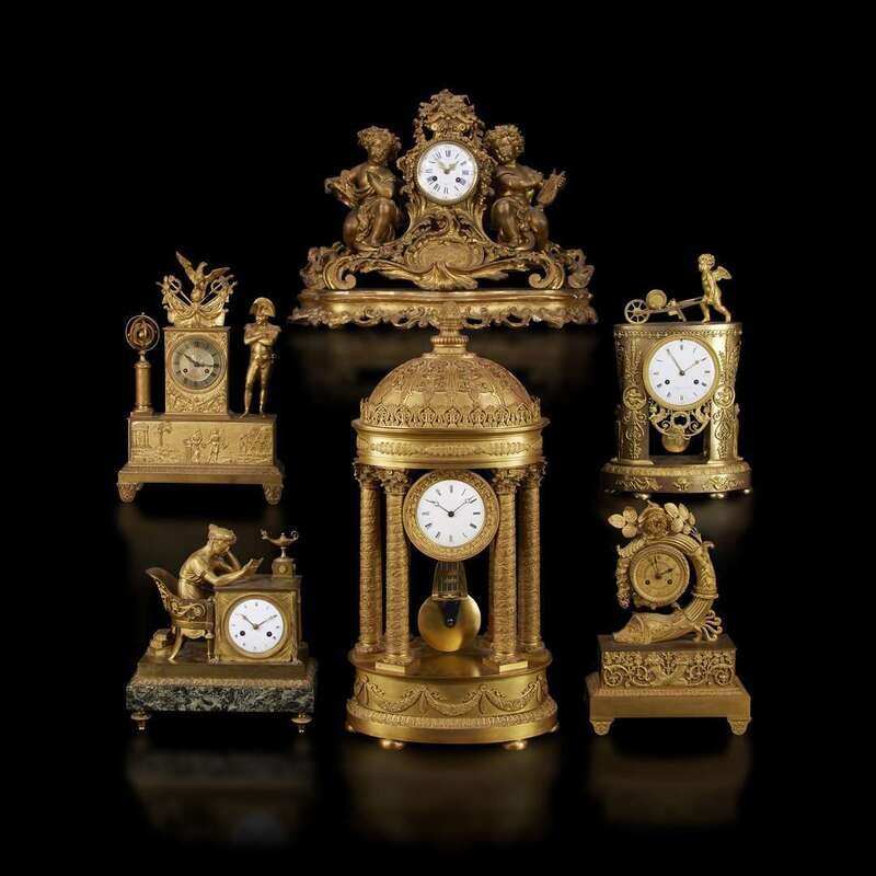 A Napoleon III giltwood and ormolu garniture clock Richond à Paris, third quarter 19th century