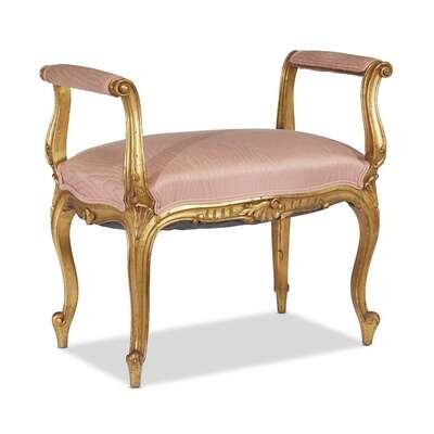 With upholstered side rails above a shaped upholstered seat, with moulded cabriole legs terminating in scroll feet.