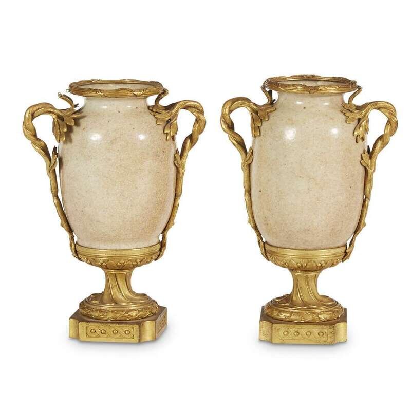 A pair of Louis XVI ormolu-mounted celadon vases last quarter 18th century