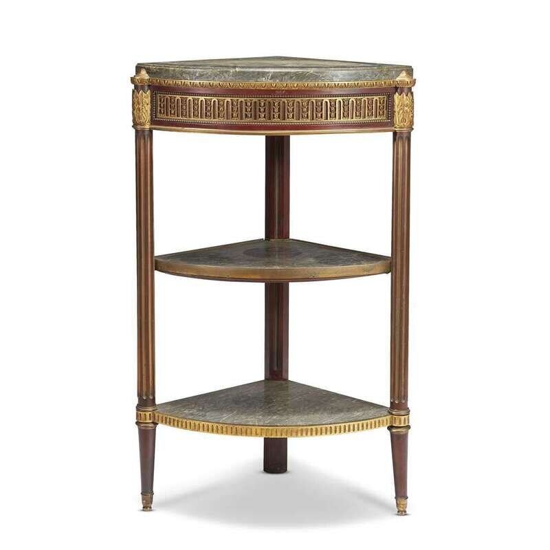 A Louis XVI style gilt-bronze mounted mahogany étagère-encoignure circa 1900