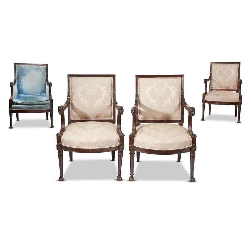 After the models by François-Honoré-Georges Jacob-Desmalter (French, 1770-1841), comprising three fauteuils and a bergère. (4).