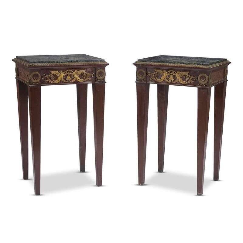 A pair of Empire Revival gilt-bronze mounted mahogany side tables late 19th century