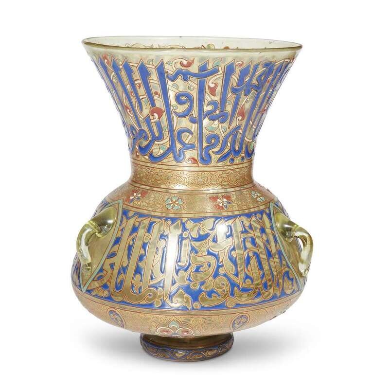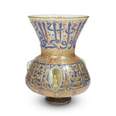 A French Mamluk style gilt and enameled glass mosque lamp second half 19th century