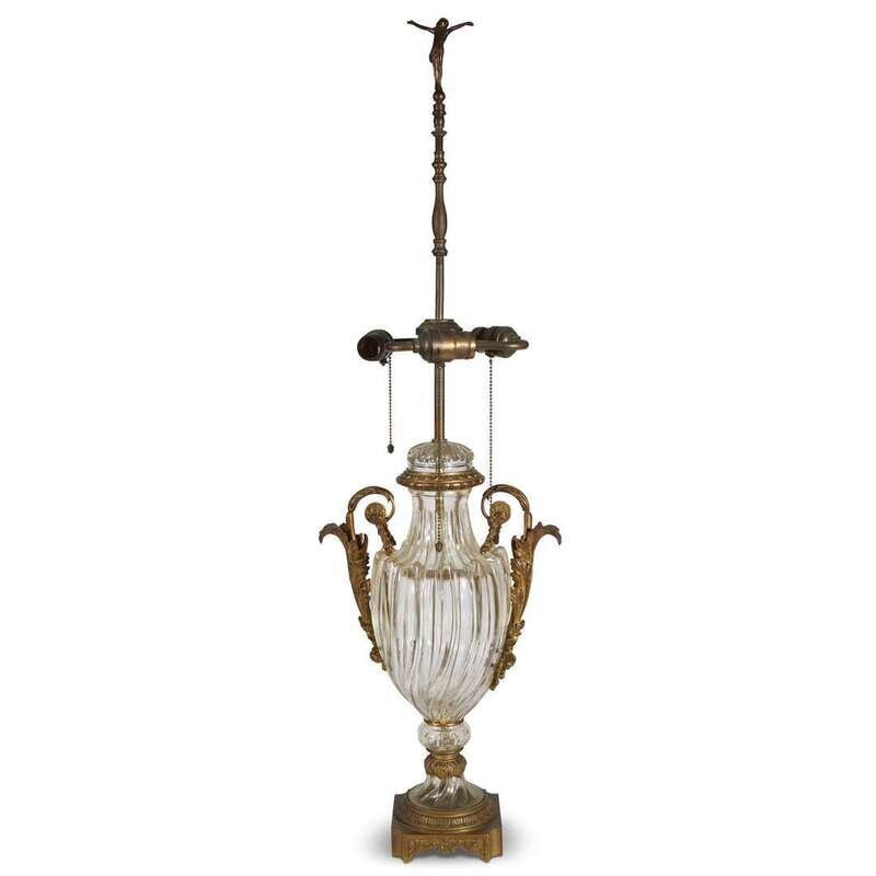 With diagonally lobed and fluted body with ormolu mounts in the Louis XVI taste; now drilled and electrified as a lamp.