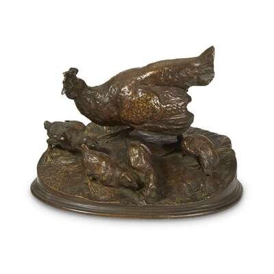 After Pierre-Jules Mêne (French, 1810-1879) Poule avec des Poussins, 20th century
