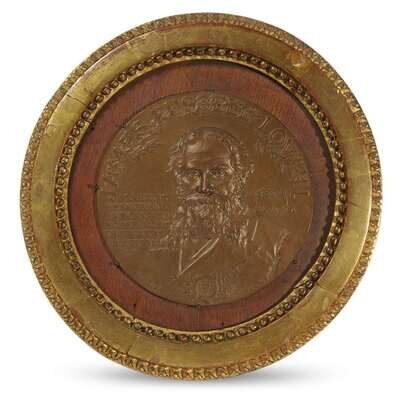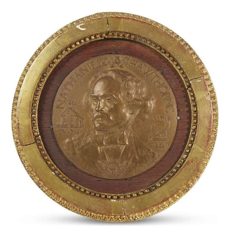 Comprising "Nathaniel Hawthorne" by Jean Ringel d'Illizach (French, 1847-1916), signed and dated in cast "Ringel-D'Illizach Medr MDCCCXCII" and with French ink inscription on rear: "Nathaniel Hawtorne [sic.] edite par le Grolier Club"; and "James Russell Lowell" by Charles Calverley (American, 1833-1914), signed and dated in cast "Chas. Calverley Sc. MDCCCXCV" and with French ink inscription on rear: "James Russell Lowell edite par le Grolier Club." (2).
