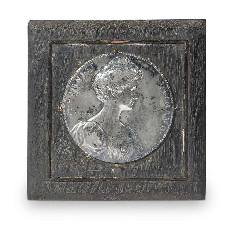 A mounted silvered-bronze bas-relief medallion of Mme. Ernest Raynaud Victor David Brenner (Litvak-American, 1871–1924), 1901