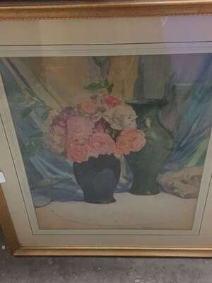 EVERETT LLOYD BRYANT (AMERICAN 1864-1945) FLORAL STILL LIFE WITH GREEN VASE; AND A COMPANION