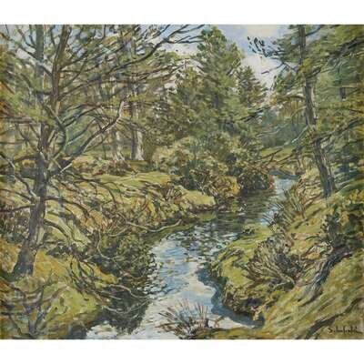 WALTER ELMER SCHOFIELD (AMERICAN 1867-1944) "WOODLAND STREAM"