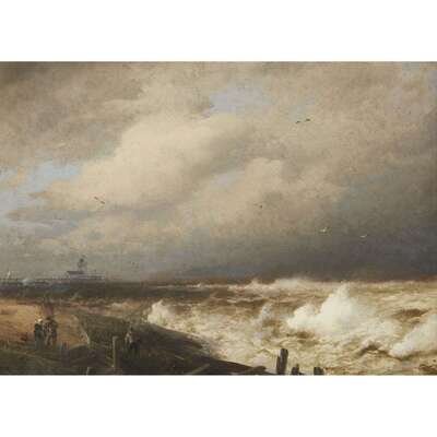 HERMANN HERZOG (AMERICAN/GERMAN 1832–1932) "STORM ON THE FRIESLAND COAST"