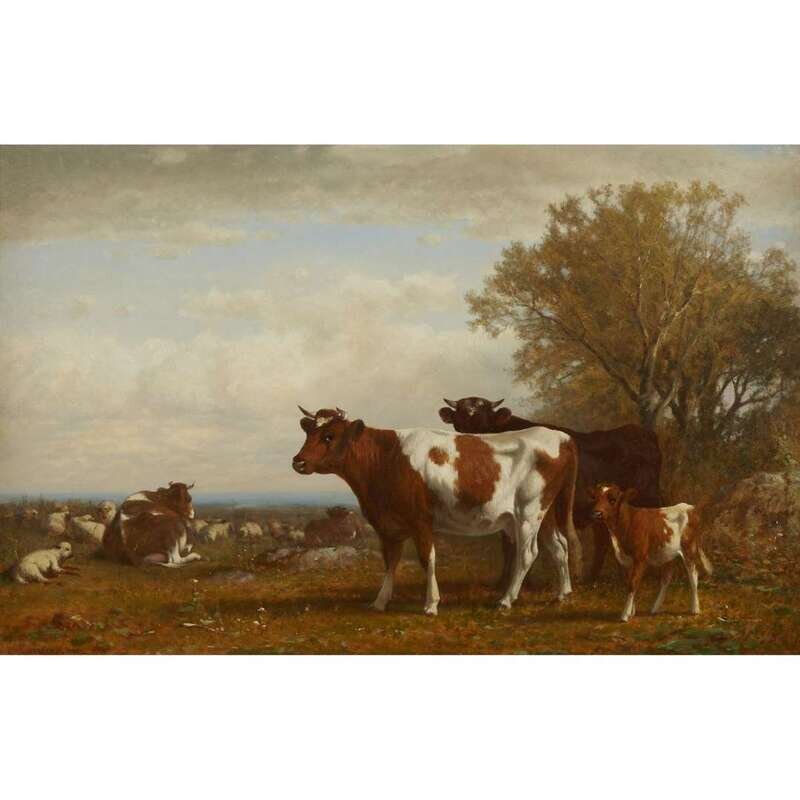 JAMES MCDOUGAL HART (AMERICAN 1828–1901) "LANDSCAPE WITH COWS"