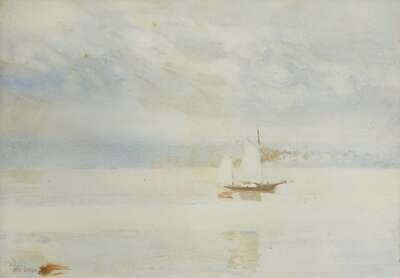CHILDE HASSAM (AMERICAN 1859-1935) "RAIN AND MIST, GLOUCESTER HARBOR"