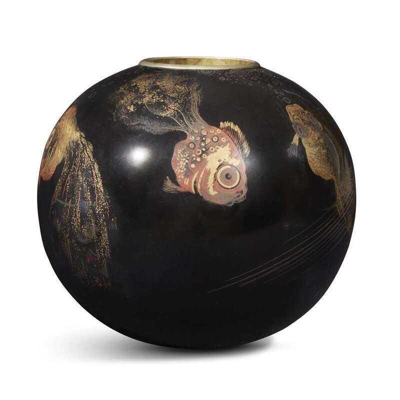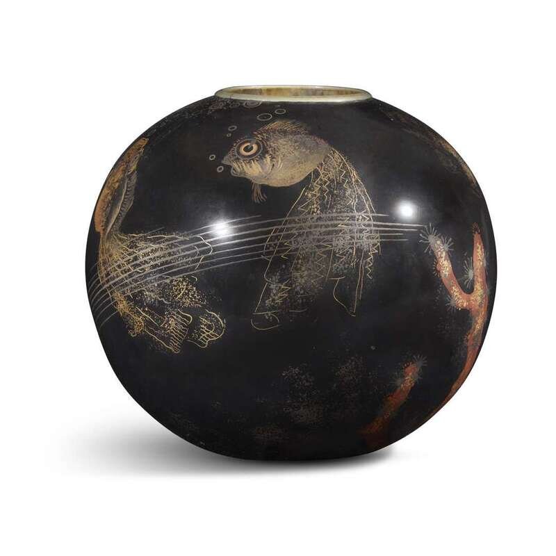 JEAN DUNAND (FRENCH, 1877-1942) POISSONS VASE, FRANCE, CIRCA 1925