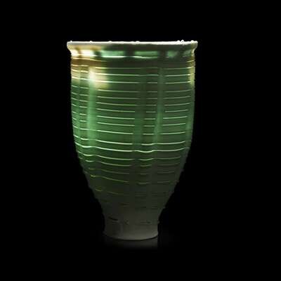 RUDOLF STAFFEL (AMERICAN, 1911-2002) THROWN, SCORED AND APPLIED PORCELAIN "LIGHT GATHERER" VESSEL