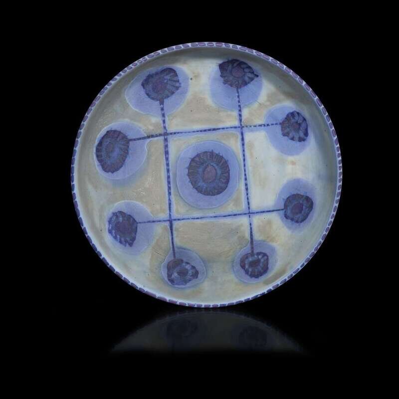 RUDOLF STAFFEL (AMERICAN, 1911-2002) THROWN PORCELAIN LOW BOWL WITH COBALT OXIDE DECORATION
